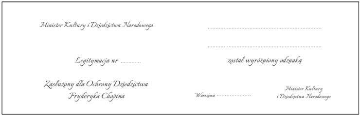 WZÓR LEGITYMACJI „ZASŁUŻONY DLA OCHRONY DZIEDZICTWA FRYDERYKA CHOPINA" [1]