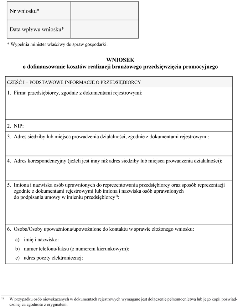 WZÓR - WNIOSEK O DOFINANSOWANIE KOSZTÓW REALIZACJI BRANŻOWEGO PRZEDSIĘWZIĘCIA PROMOCYJNEGO [12]