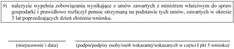 4) [9] należycie wypełnia zobowiązania wynikające z umów zawartych z ministrem właściwym do spraw gospodarki i prawidłowo rozliczył pomoc otrzymaną na podstawie tych umów, zawartych w okresie 3 lat poprzedzających dzień złożenia wniosku;