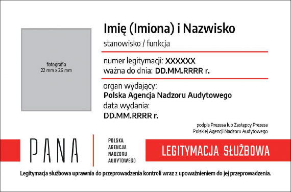 WZÓR LEGITYMACJI SŁUŻBOWEJ WYDAWANEJ PRZEZ POLSKĄ AGENCJĘ NADZORU AUDYTOWEGO [1]