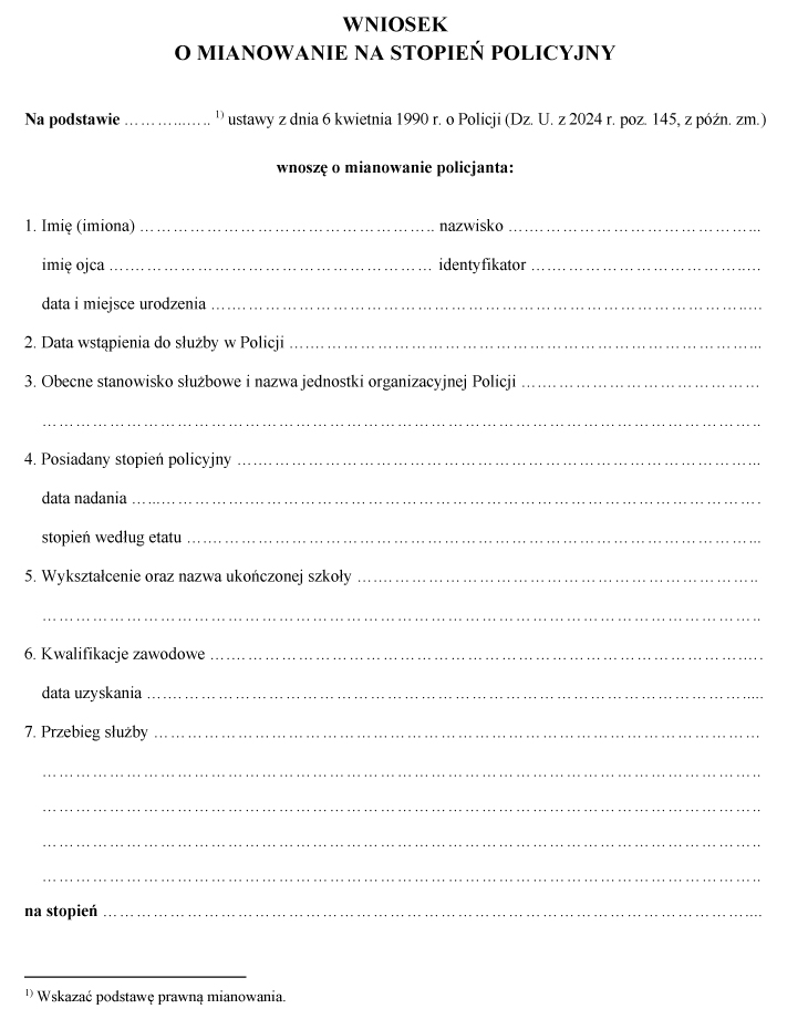 WZÓR - WNIOSEK O MIANOWANIE NA STOPIEŃ POLICYJNY