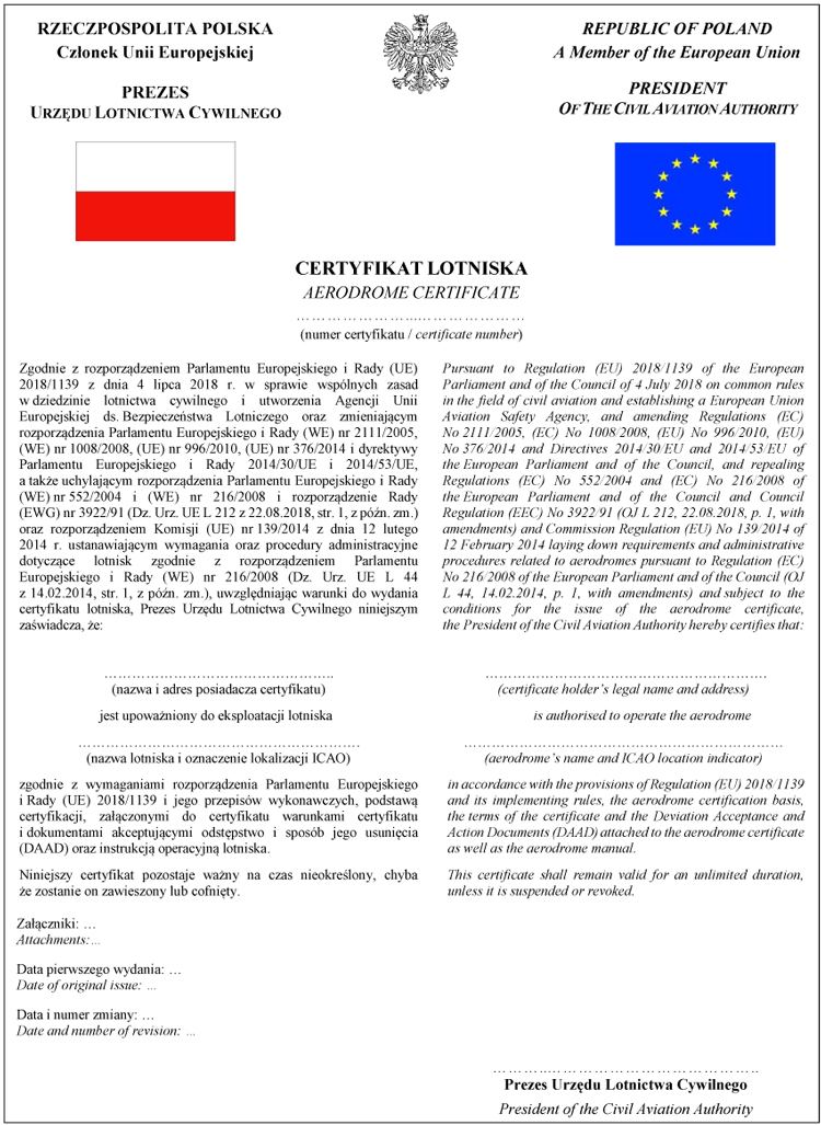 WZÓR - CERTYFIKAT LOTNISKA (ADRC)