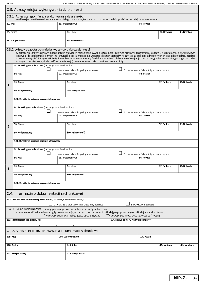[2] Załącznik nr 3 w brzmieniu ustalonym przez § 1 rozporządzenia Ministra Finansów i Gospodarki z dnia 26 listopada 2025 r. zmieniającego rozporządzenie w sprawie wzorów formularzy zgłoszeń identyfikacyjnych i zgłoszeń aktualizacyjnych oraz zgłoszeń w zakresie danych uzupełniających (Dz.U. poz. 1681). Zmiana weszła w życie 1 stycznia 2026 r.