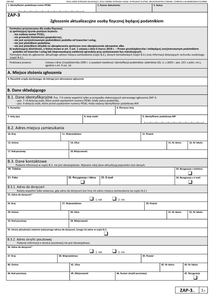 3) zgłoszenia aktualizacyjnego osoby fizycznej będącej podatnikiem (ZAP-3), stanowiący załącznik nr 3 do rozporządzenia;