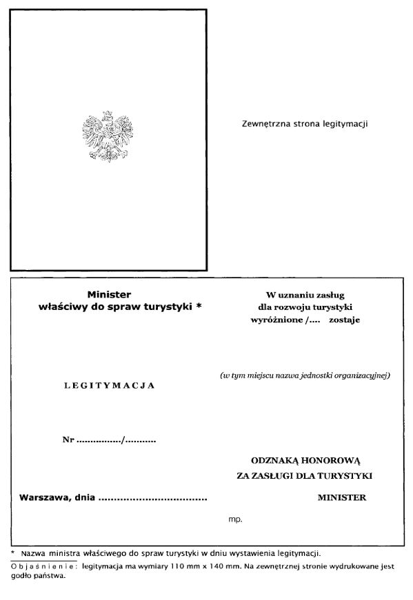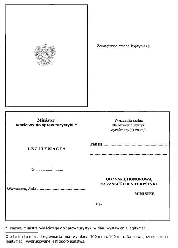 WZÓR LEGITYMACJI STWIERDZAJĄCEJ NADANIE ODZNAKI HONOROWEJ „ZA ZASŁUGI DLA TURYSTYKI” OSOBIE FIZYCZNEJ