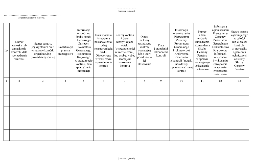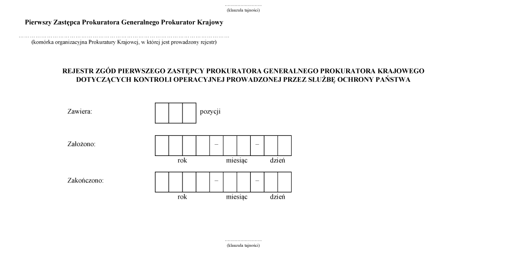 WZÓR REJESTRU ZGÓD PROWADZONEGO PRZEZ PIERWSZEGO ZASTĘPCĘ PROKURATORA GENERALNEGO PROKURATORA KRAJOWEGO