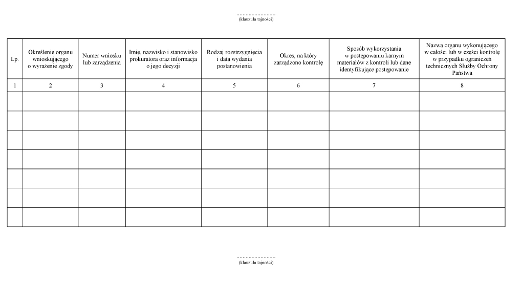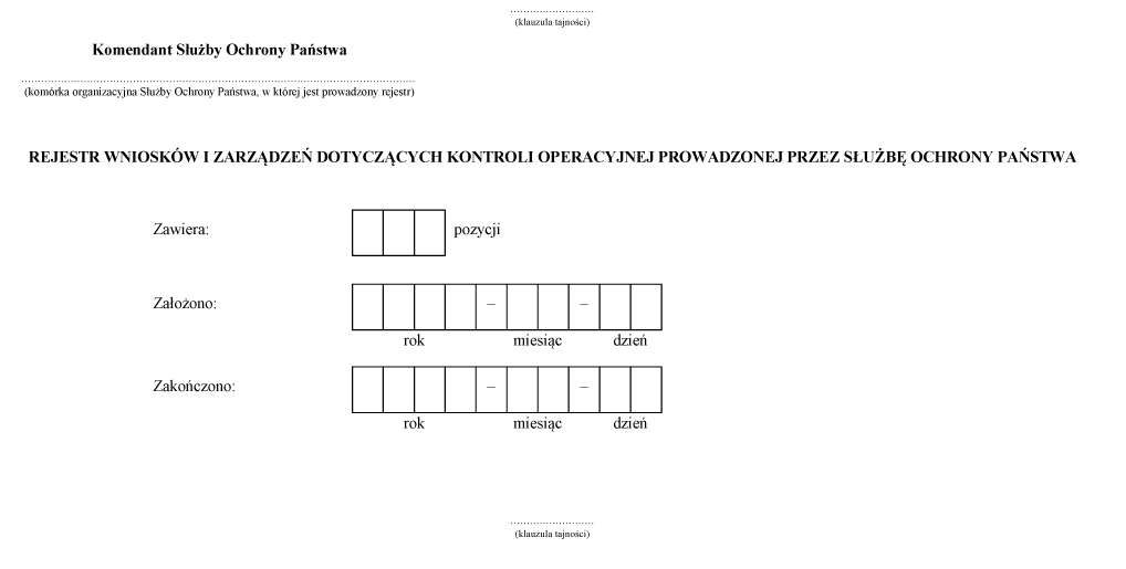 WZÓR REJESTRU WNIOSKÓW I ZARZĄDZEŃ PROWADZONEGO PRZEZ KOMENDANTA SŁUŻBY OCHRONY PAŃSTWA
