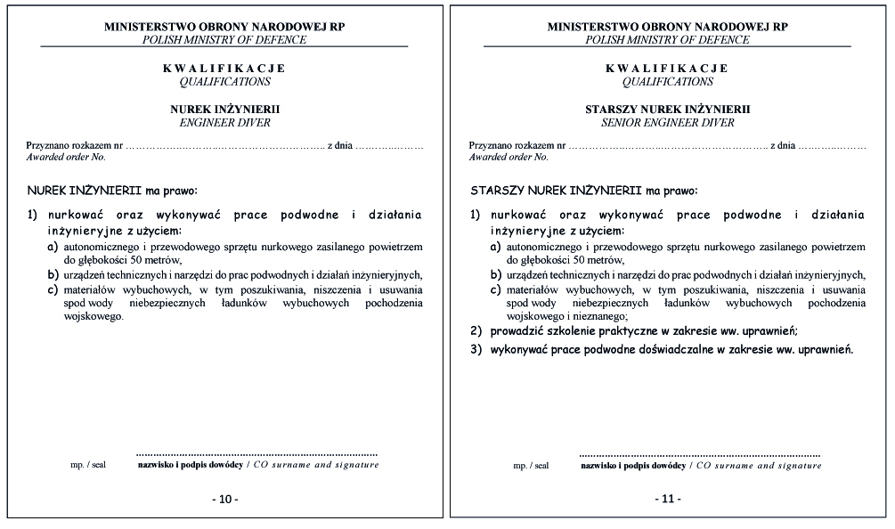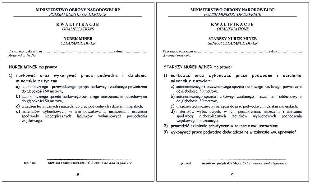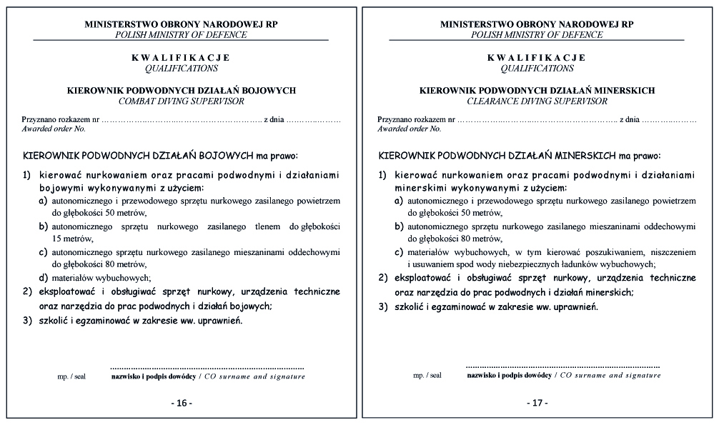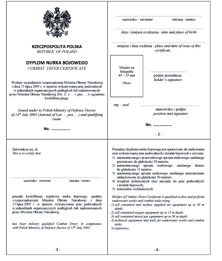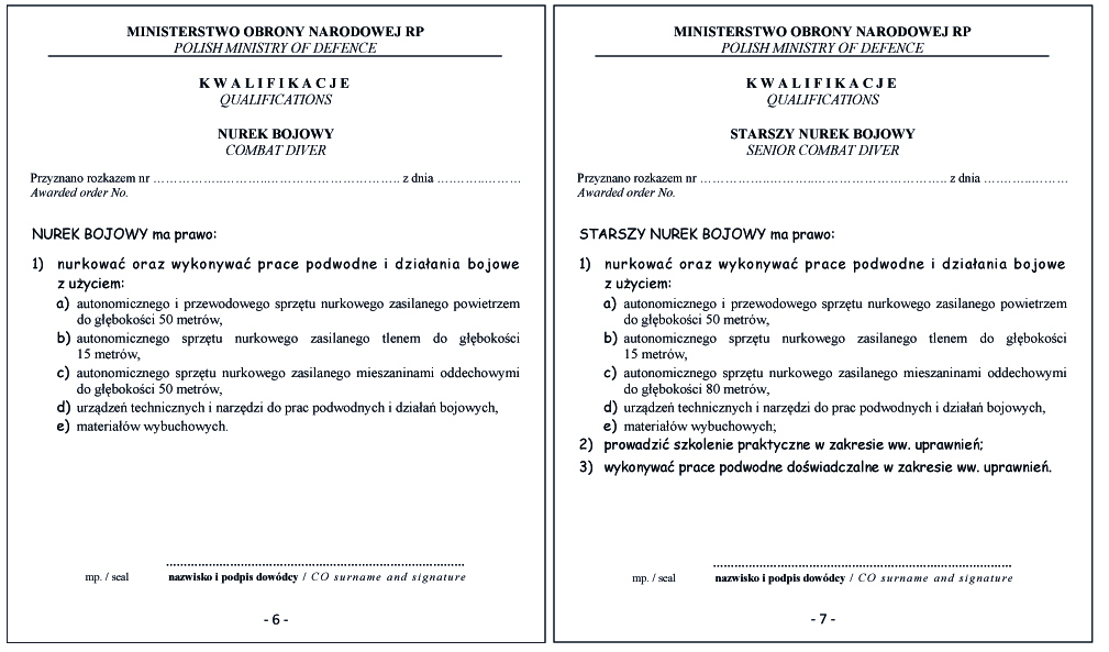 WZÓR DYPLOMU NURKA BOJOWEGO
