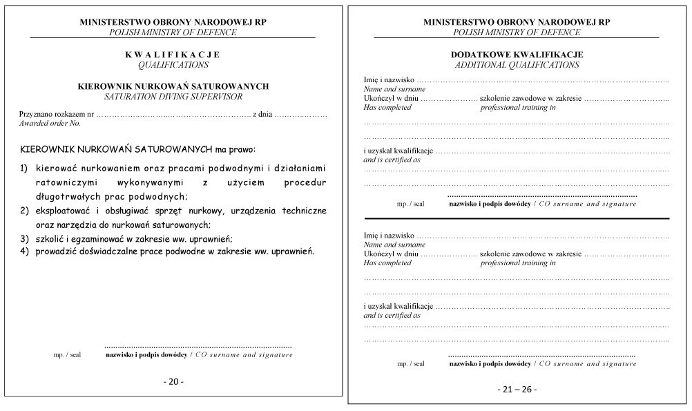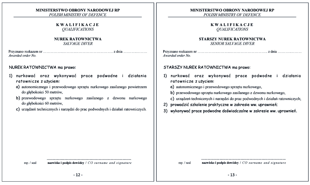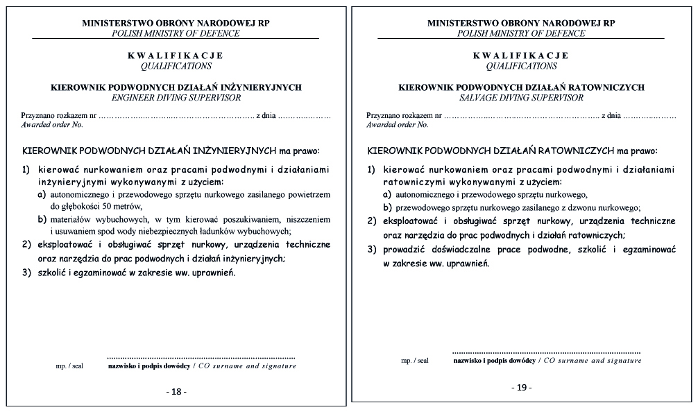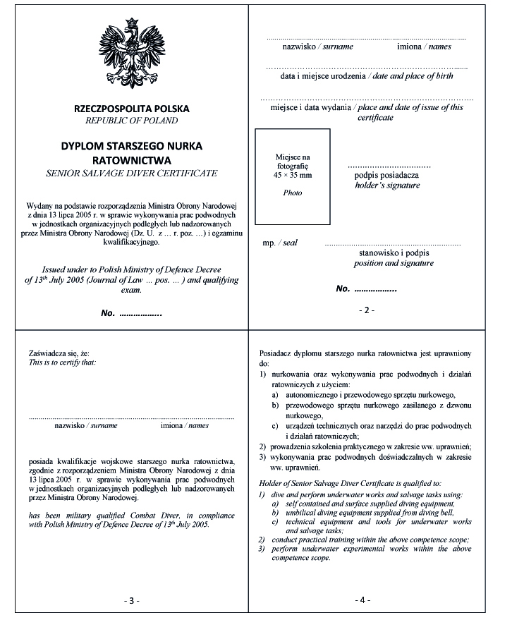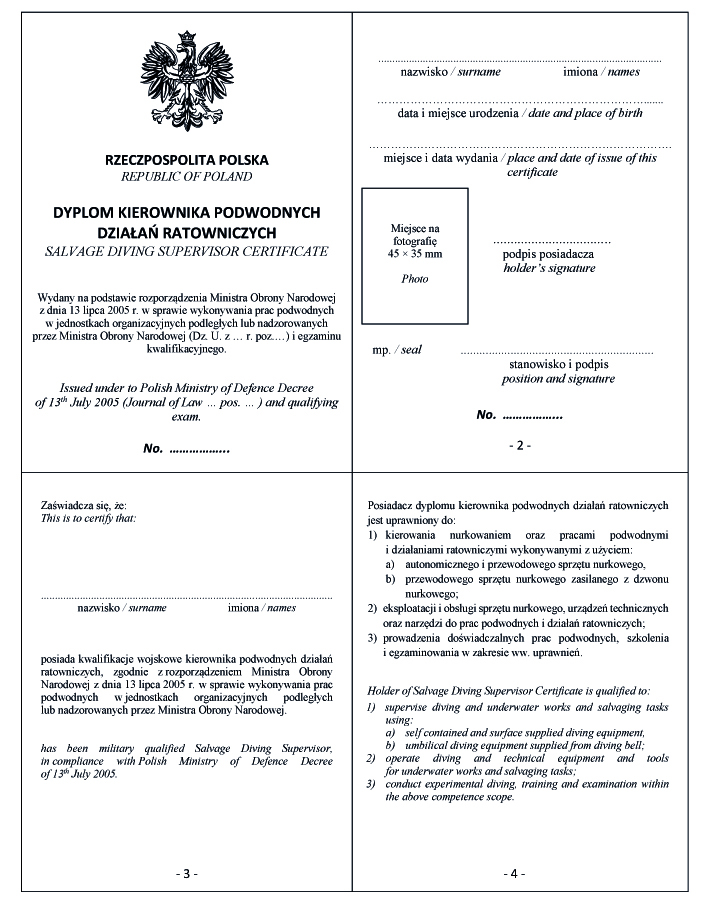 WZÓR DYPLOMU KIEROWNIKA PODWODNYCH DZIAŁAŃ RATOWNICZYCH