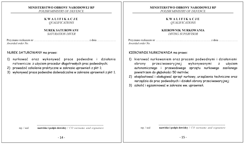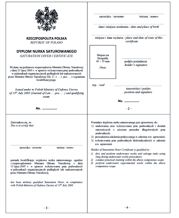 WZÓR DYPLOMU NURKA SATUROWANEGO