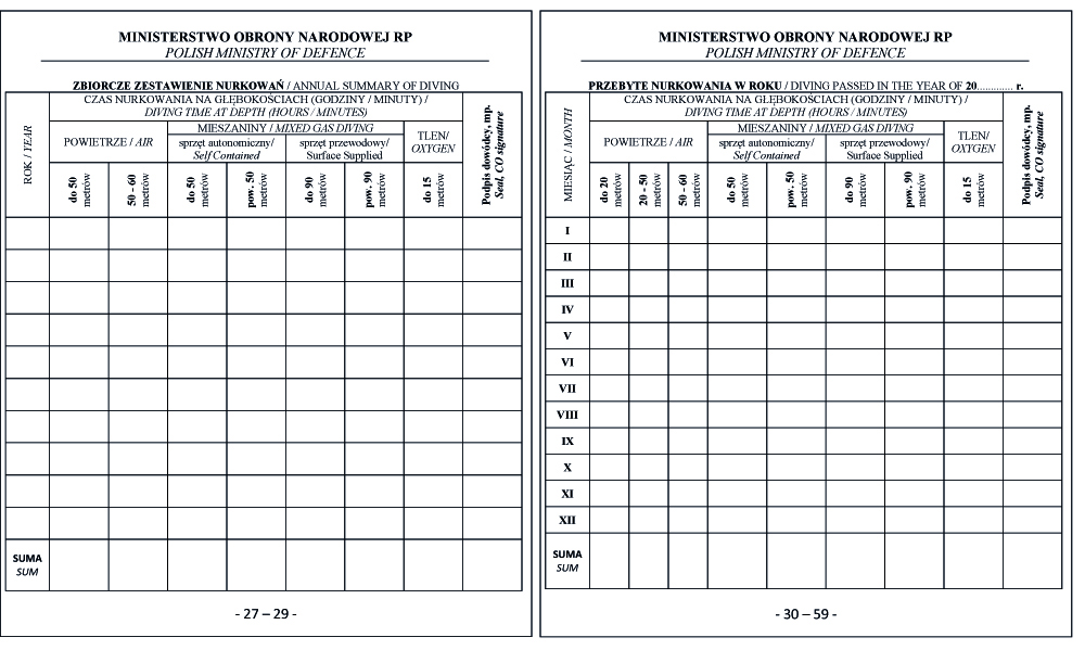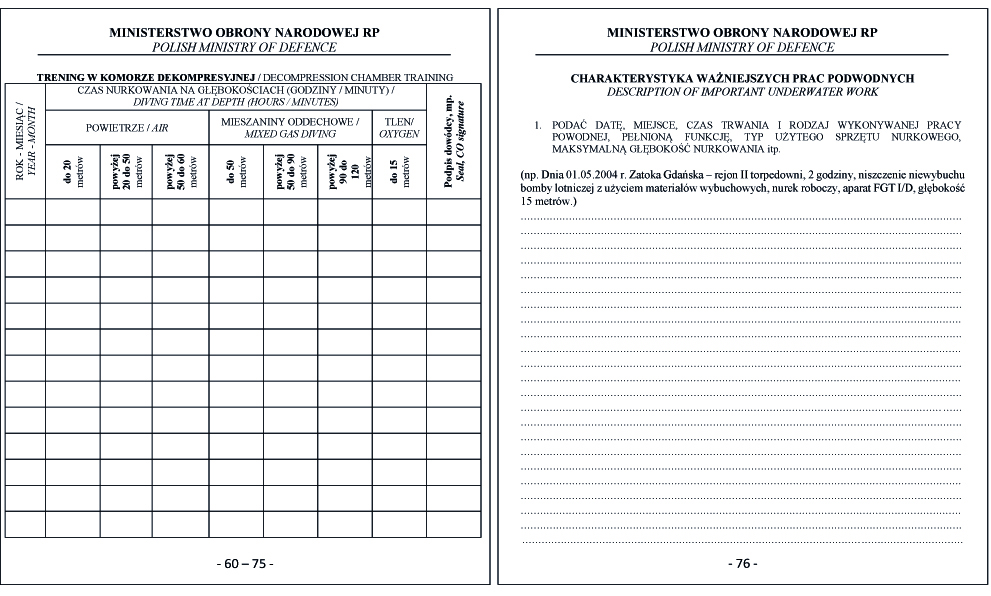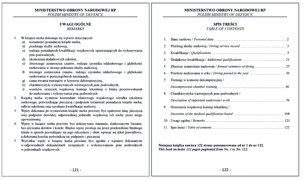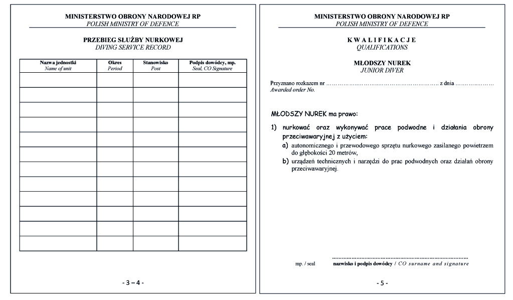 WZÓR KSIĄŻKI NURKA
