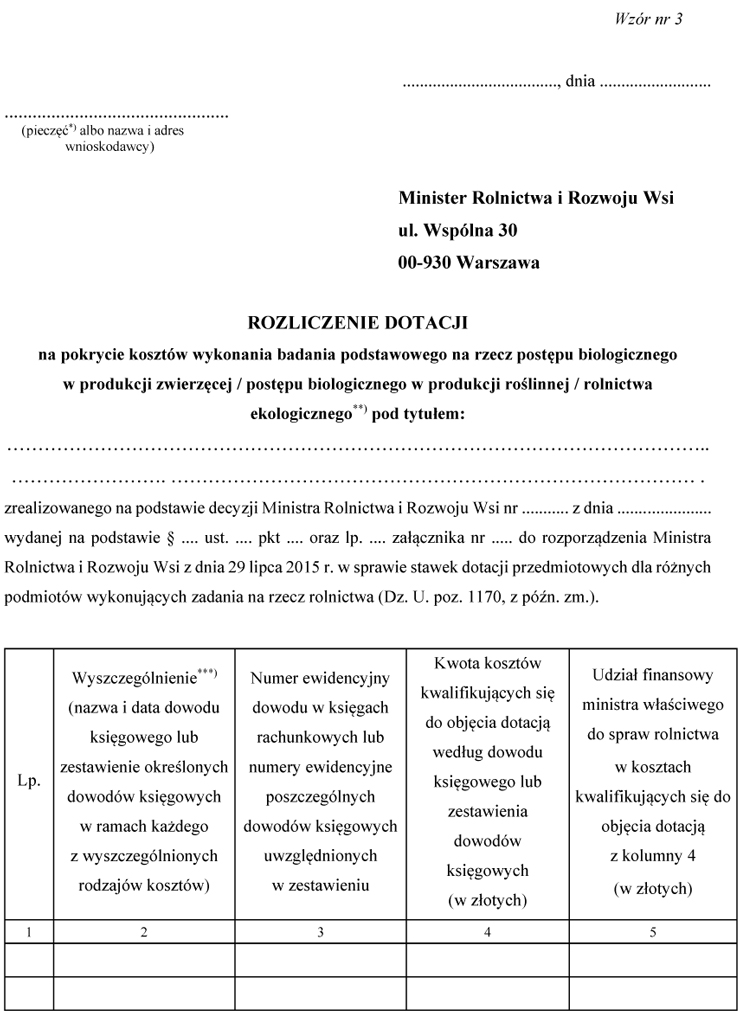 WZÓR - ROZLICZENIE DOTACJI NA POKRYCIE KOSZTÓW WYKONANIA BADANIA PODSTAWOWEGO NA RZECZ POSTĘPU BIOLOGICZNEGO W PRODUKCJI ZWIERZĘCEJ / POSTĘPU BIOLOGICZNEGO W PRODUKCJI ROŚLINNEJ / ROLNICTWA EKOLOGICZNEGO