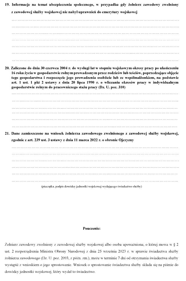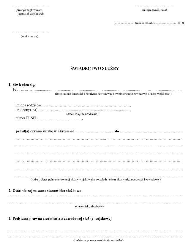 WZÓR - ŚWIADECTWO SŁUŻBY