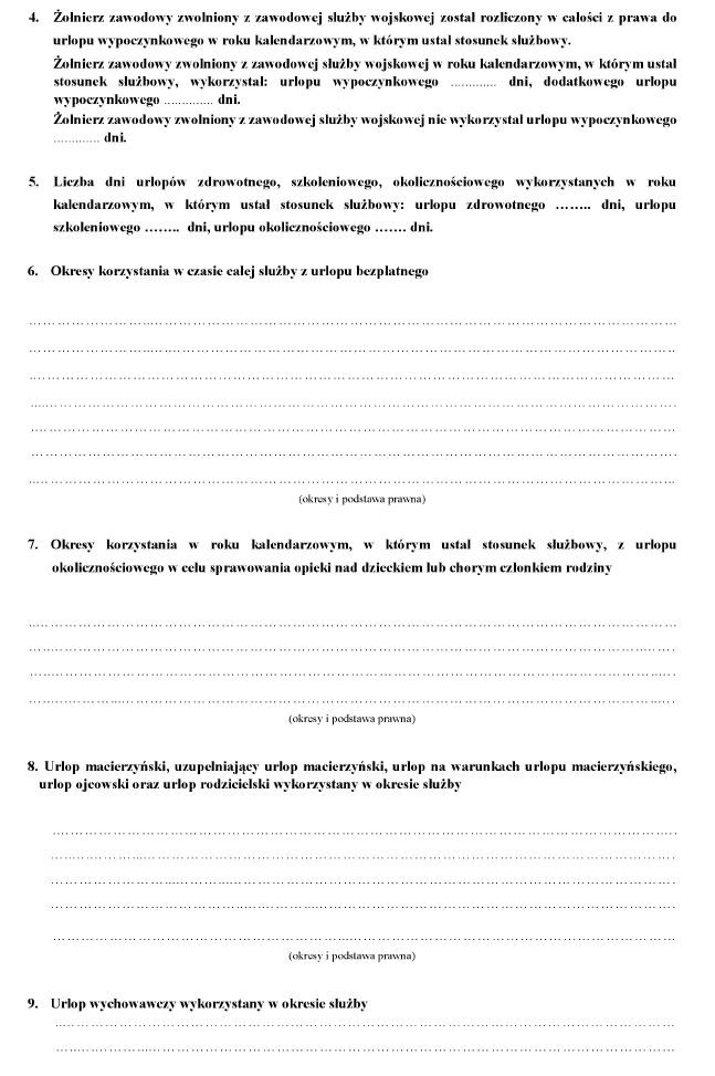 „w sprawie świadectwa służby żołnierza zawodowego”;