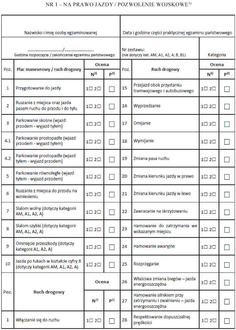 „2) w ruchu drogowym w zakresie prawa jazdy kategorii AM, A1, A2 lub A egzaminator ocenia wykonanie zadań egzaminacyjnych z innego pojazdu egzaminacyjnego jadącego za osobą egzaminowaną, mając zapewnioną możliwość porozumiewania się z nią drogą radiową - nie dotyczy osoby egzaminowanej w zakresie prawa jazdy kategorii AM w przypadku, gdy pojazd egzaminacyjny dla prawa jazdy kategorii AM umożliwia przebywanie egzaminatora w pojeździe; w przypadku głuchych lub niedosłyszących osób egzaminowanych dopuszcza się inne formy porozumiewania się egzaminatora z osobą egzaminowaną;”,