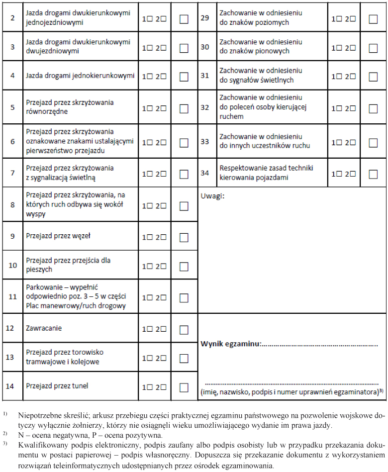 „2. Części praktycznej egzaminu przeprowadzanej w ruchu drogowym nie można przeprowadzić w przypadku, gdy osoba egzaminowana podczas realizacji części praktycznej egzaminu na placu manewrowym: