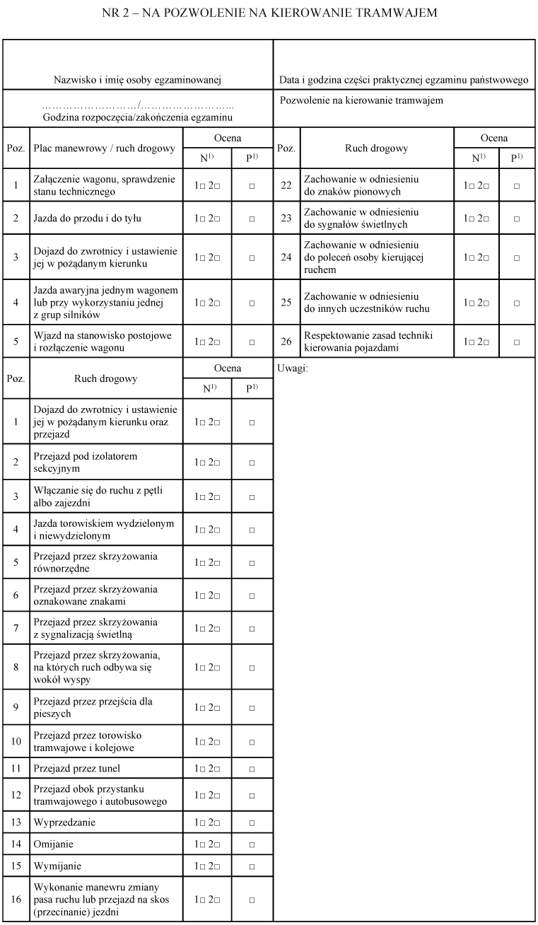 § 2.[Ważność arkuszy przebiegu części praktycznej egzaminu sporządzone według wzoru określonego w przepisach dotychczasowych] Arkusze przebiegu części praktycznej egzaminu sporządzone według wzoru określonego w przepisach dotychczasowych mogą być stosowane do czasu wyczerpania zapasów druków, nie dłużej jednak niż przez rok od dnia wejścia w życie rozporządzenia.