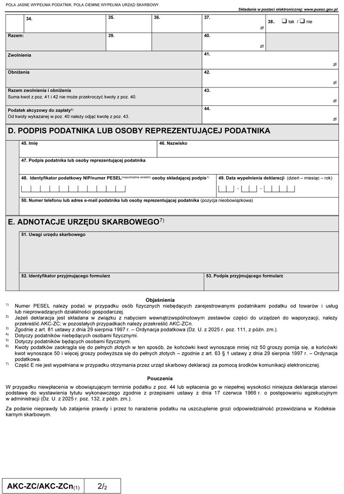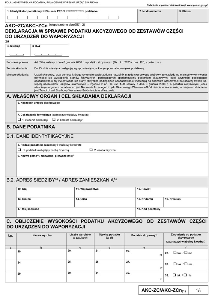 „5a) deklaracji w sprawie podatku akcyzowego od zestawów części do urządzeń do waporyzacji (AKC-ZC/AKC-ZCn), o której mowa w art. 24ba ustawy;”;