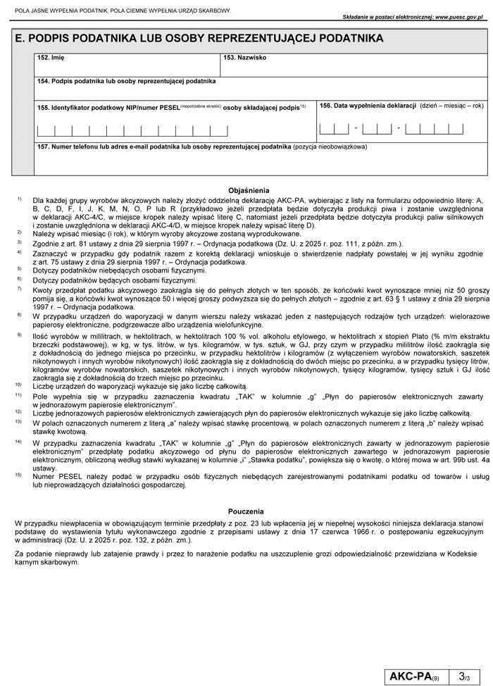 § 3. [Stosowanie wzorów deklaracji] 1. Wzory deklaracji określone w załącznikach nr 1, 14a, 14b i 19 do rozporządzenia zmienianego w § 1, w brzmieniu nadanym niniejszym rozporządzeniem, stosuje się do rozliczeń podatku akcyzowego od saszetek nikotynowych oraz podatku akcyzowego od innych wyrobów nikotynowych za okresy rozliczeniowe przypadające od dnia 1 sierpnia 2025 r.