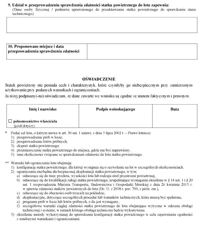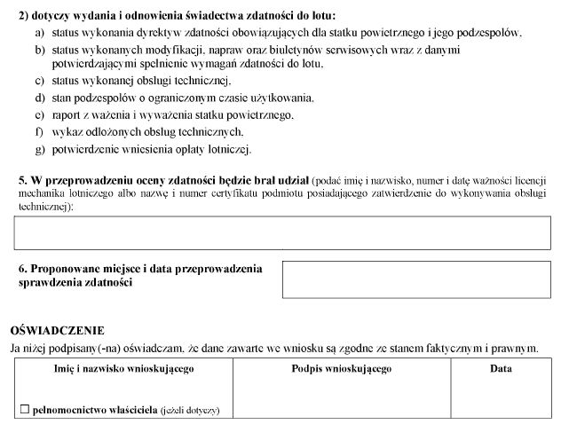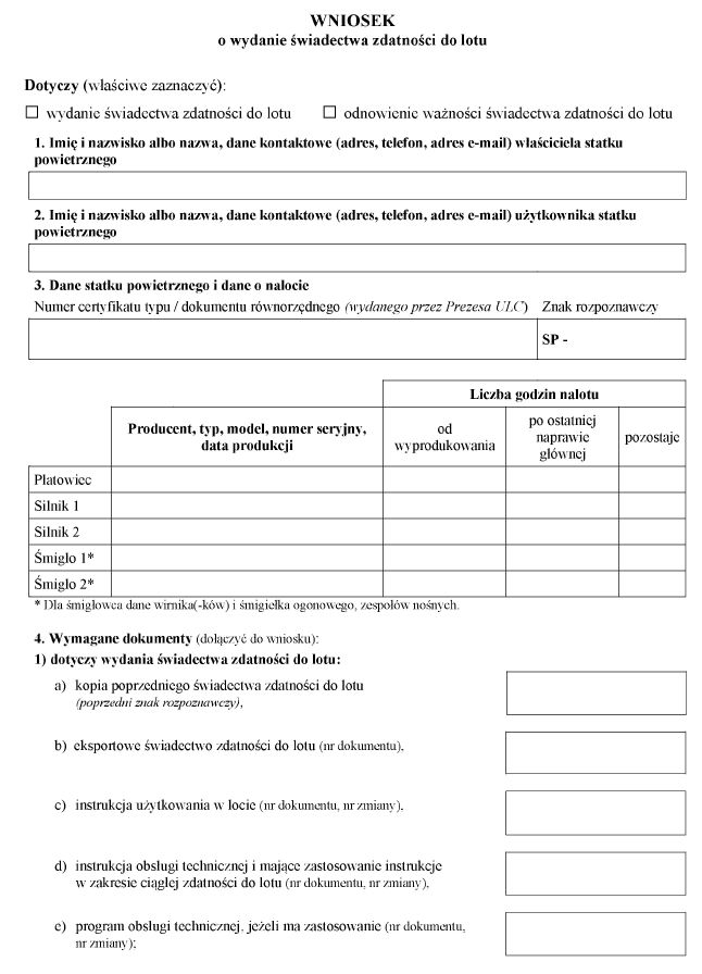 WZÓR WNIOSKU O WYDANIE ŚWIADECTWA ZDATNOŚCI DO LOTU