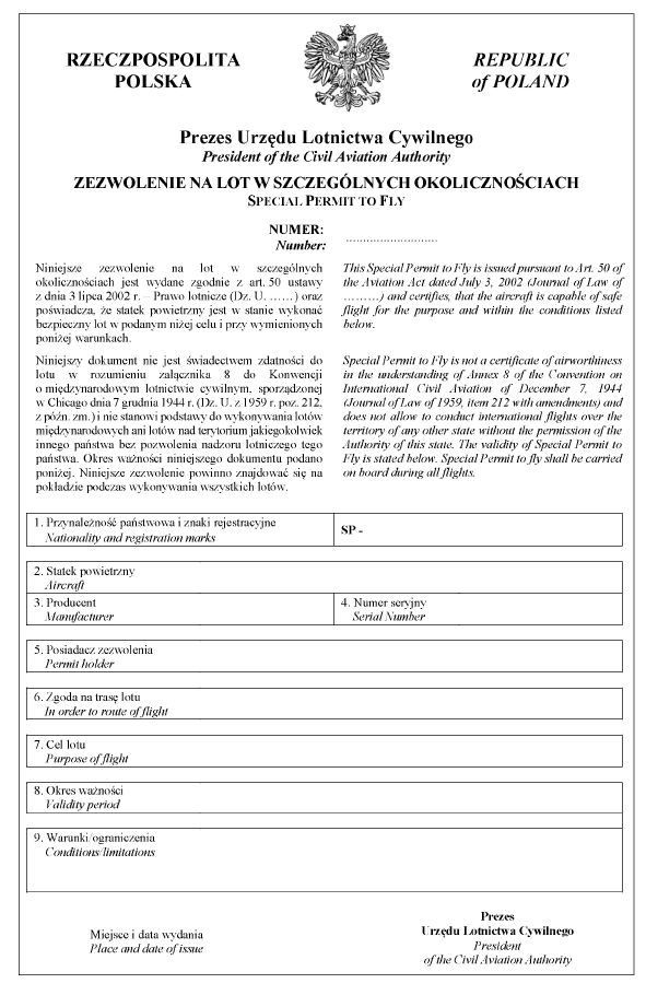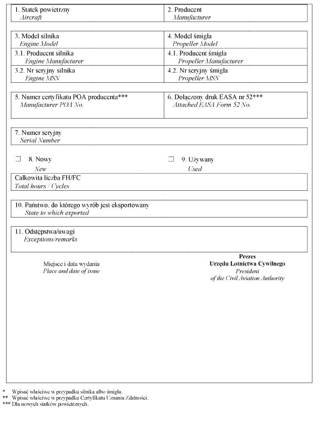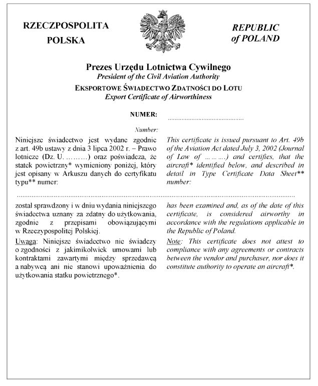 WZÓR EKSPORTOWEGO ŚWIADECTWA ZDATNOŚCI DO LOTU