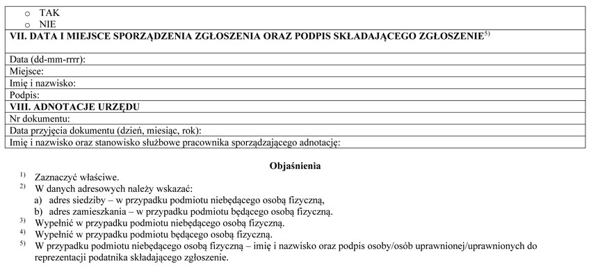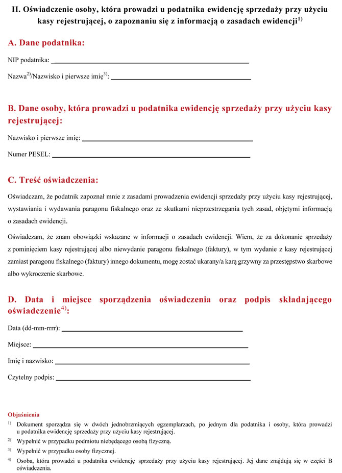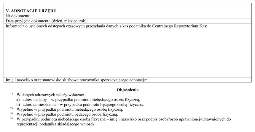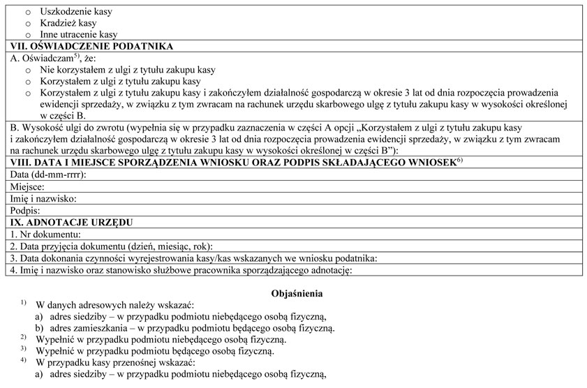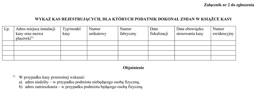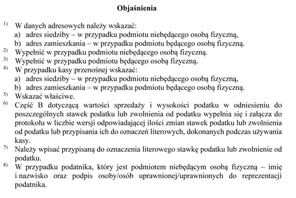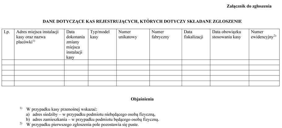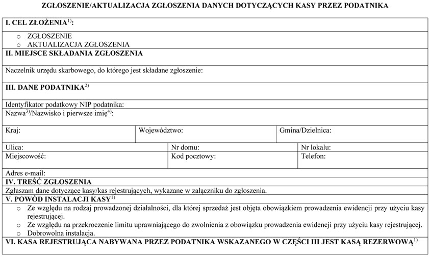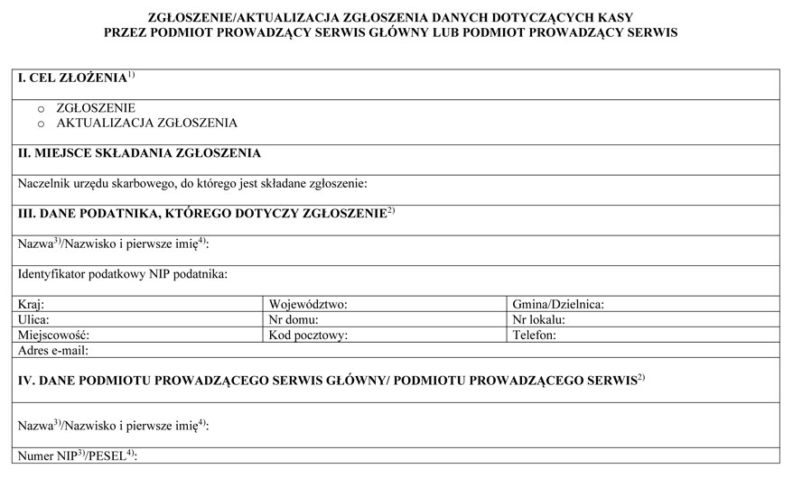 WZÓR - ZGŁOSZENIE/AKTUALIZACJA ZGŁOSZENIA DANYCH DOTYCZĄCYCH KASY PRZEZ PODATNIKA