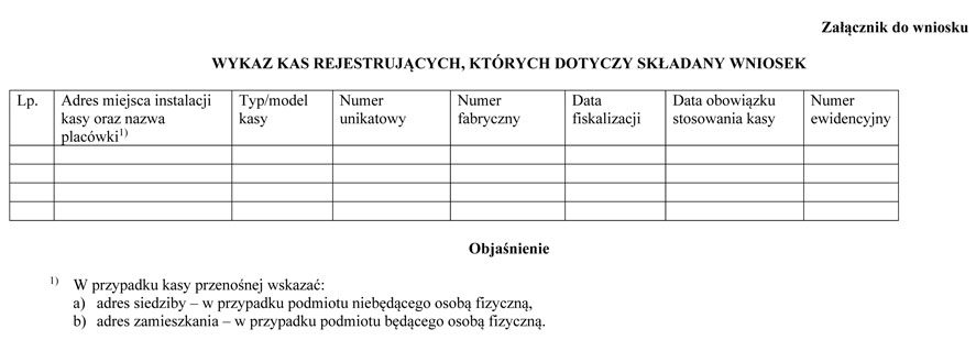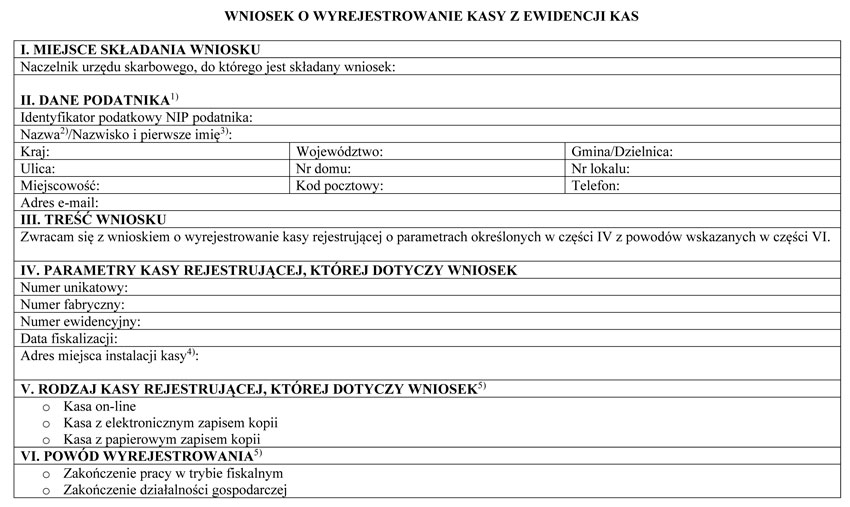 WZÓR - WNIOSEK O WYREJESTROWANIE KASY Z EWIDENCJI KAS