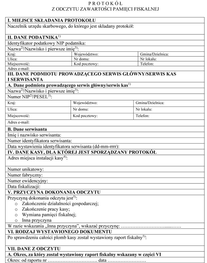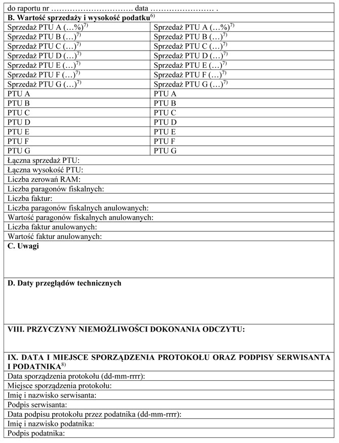 WZÓR - PROTOKÓŁ Z ODCZYTU ZAWARTOŚCI PAMIĘCI FISKALNEJ