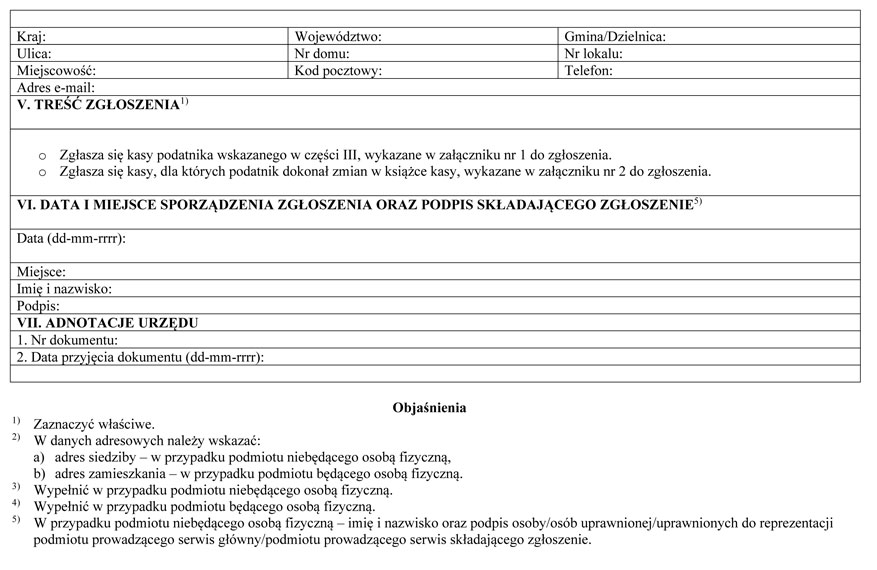 WZÓR - ZGŁOSZENIE/AKTUALIZACJA ZGŁOSZENIA DANYCH DOTYCZĄCYCH KASY