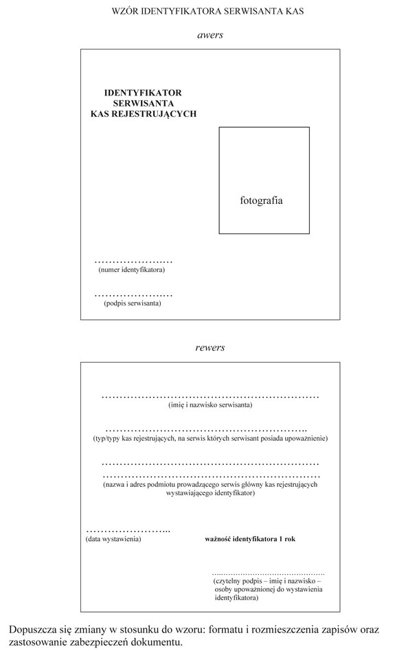 3. Identyfikator serwisanta jest ważny przez rok od dnia jego wystawienia i upoważnia do wykonywania serwisu typu (typów) kas w nim wskazanych.
