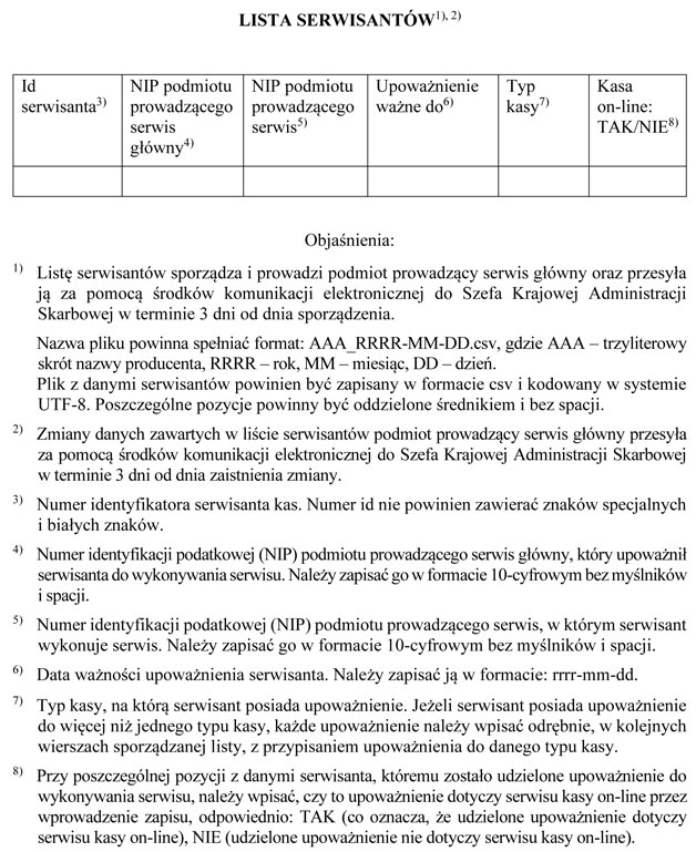 2. Wzór listy serwisantów stanowi załącznik nr 8 do rozporządzenia.