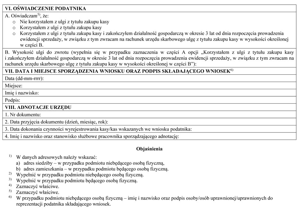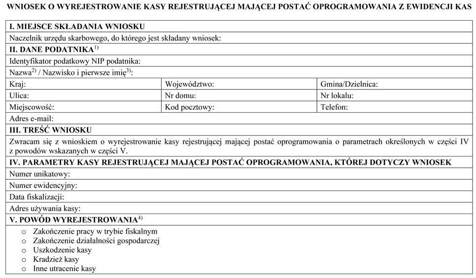WZÓR - WNIOSEK O WYREJESTROWANIE KASY REJESTRUJĄCEJ MAJĄCEJ POSTAĆ OPROGRAMOWANIA Z EWIDENCJI KAS