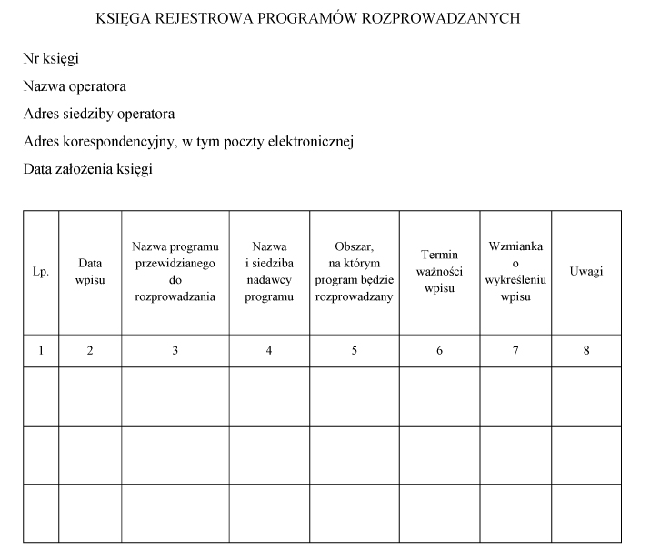 WZÓR - KSIĘGA REJESTROWA PROGRAMÓW ROZPROWADZANYCH