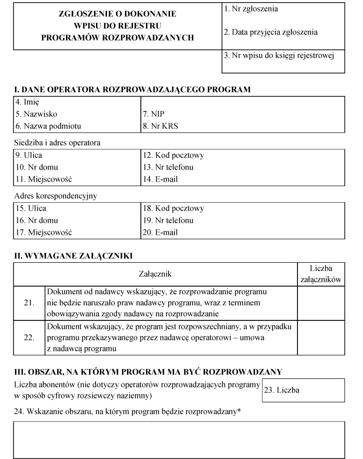WZÓR - ZGŁOSZENIE O DOKONANIE WPISU DO REJESTRU PROGRAMÓW ROZPROWADZANYCH