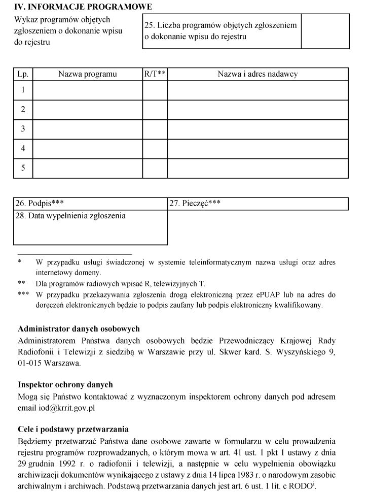 3) rubryka trzecia - nazwa programu przewidzianego do rozprowadzania;