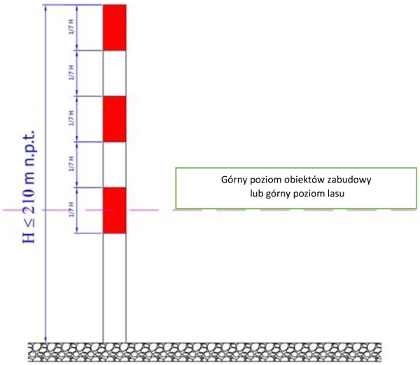 SPOSÓB OZNAKOWANIA DZIENNEGO PRZEZ POMALOWANIE PRZESZKODY LOTNICZEJ OTOCZONEJ ZABUDOWĄ LUB LASEM