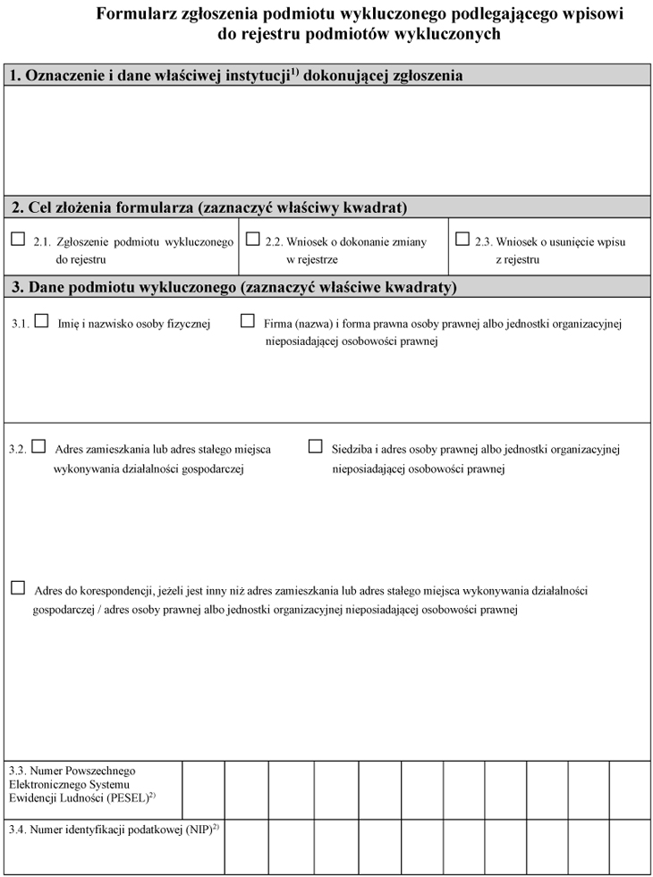 WZÓR - FORMULARZ ZGŁOSZENIA PODMIOTU WYKLUCZONEGO PODLEGAJĄCEGO WPISOWI DO REJESTRU PODMIOTÓW WYKLUCZONYCH