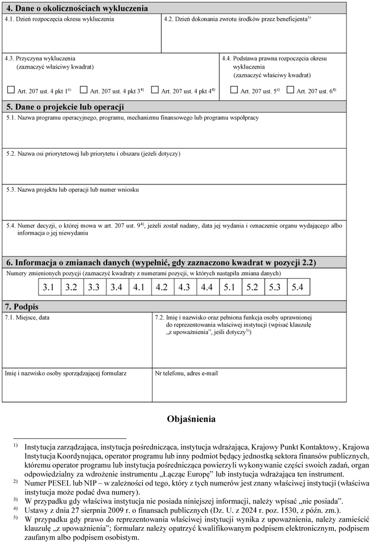 2. Właściwa instytucja zgłasza podmiot wykluczony niezwłocznie po wystąpieniu przesłanki wykluczenia określonej w art. 207 ust. 4 ustawy.