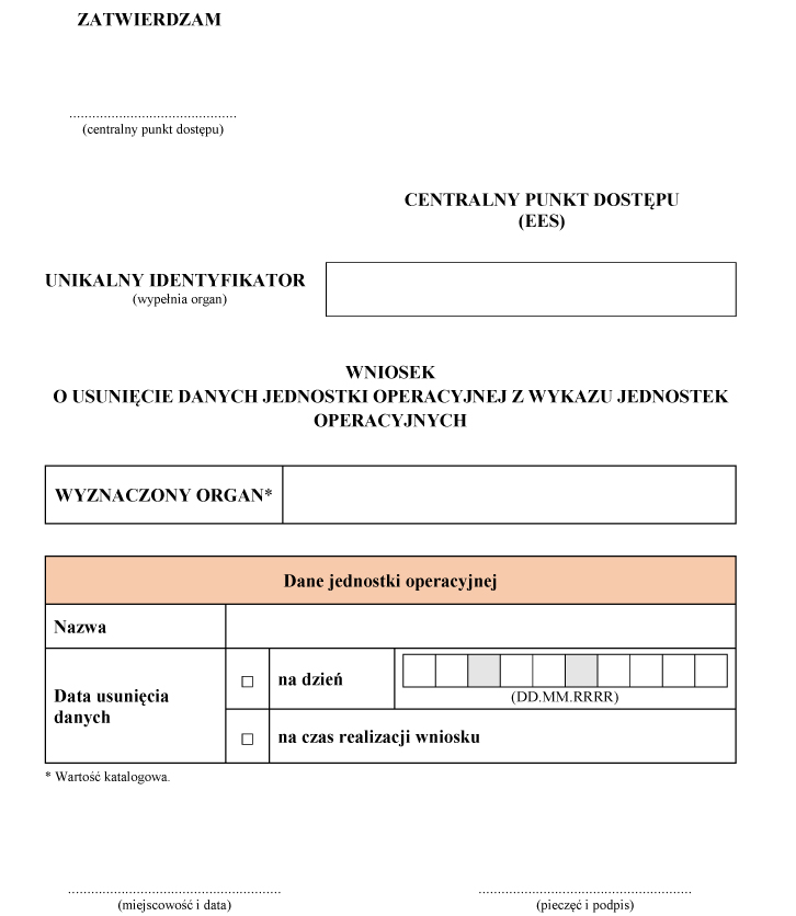WZÓR - WNIOSEK O USUNIĘCIE DANYCH JEDNOSTKI OPERACYJNEJ Z WYKAZU JEDNOSTEK OPERACYJNYCH