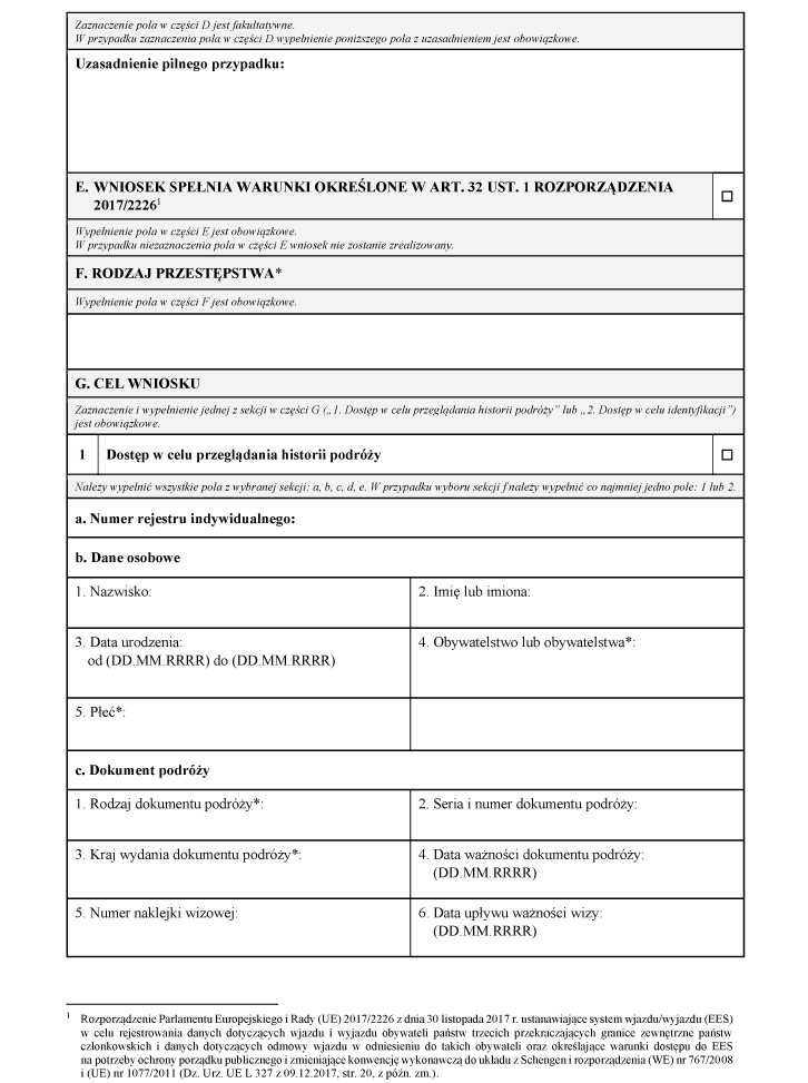 2. W przypadku gdy jednostka operacyjna nie ma dostępu do aplikacji WWW EES z przyczyn niezależnych od danej jednostki, dopuszcza się możliwość złożenia wniosku o dostęp do danych EES w formie pisemnej. Wzór wniosku jest określony w załączniku nr 4 do rozporządzenia.