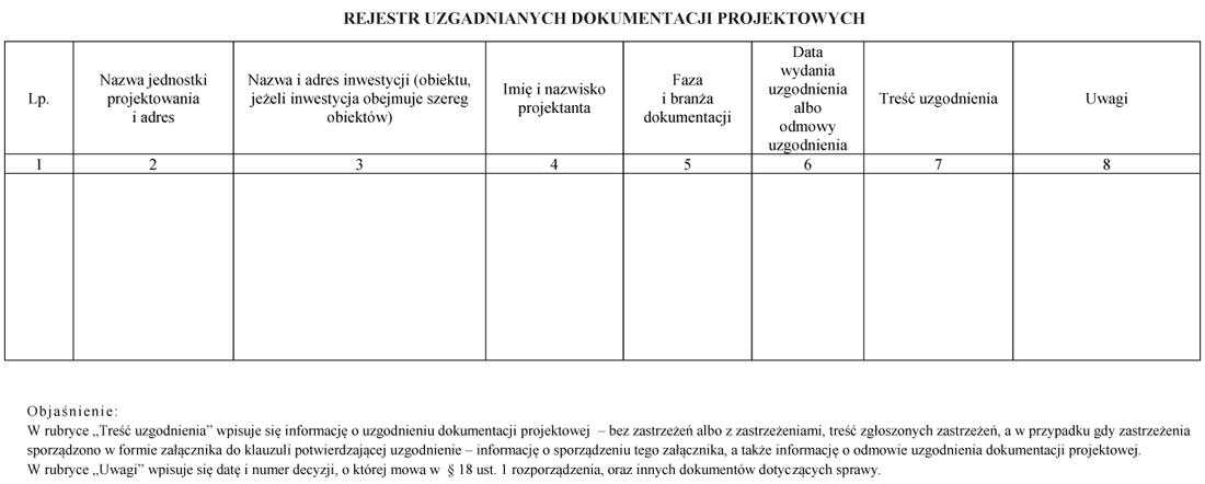 6. Rzeczoznawca prowadzi rejestr uzgadnianych dokumentacji projektowych, według wzoru określonego w załączniku nr 3 do rozporządzenia.