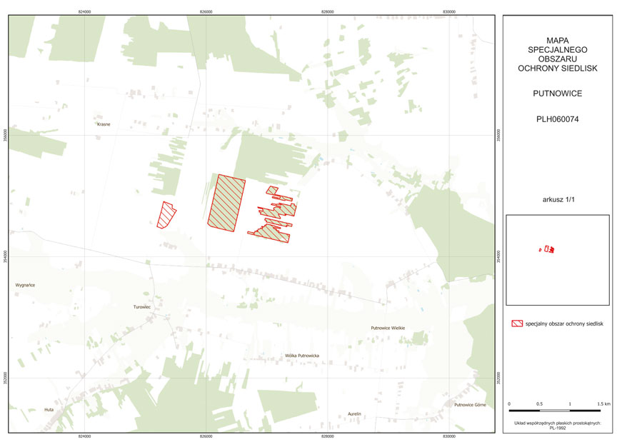MAPA SPECJALNEGO OBSZARU OCHRONY SIEDLISK PUTNOWICE (PLH060074)