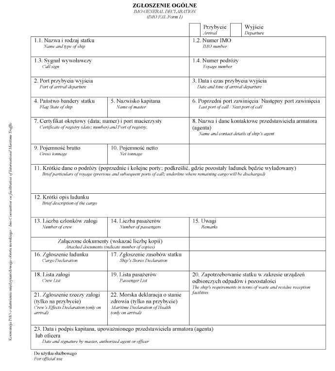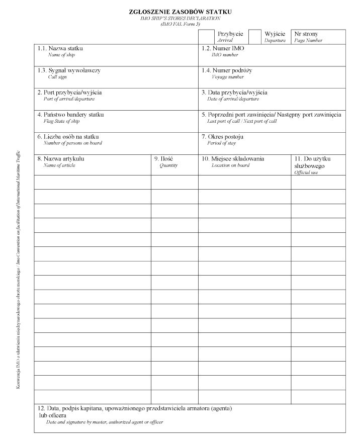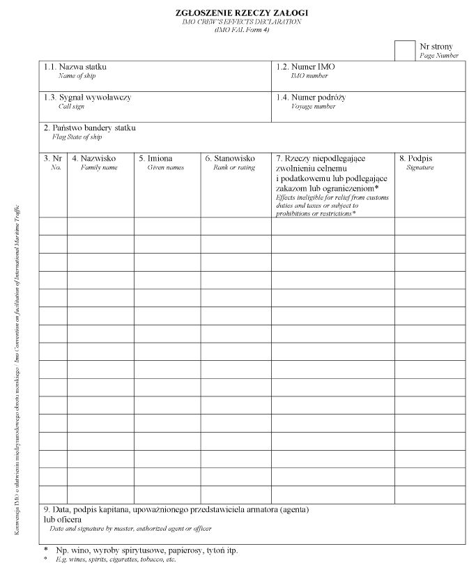 d) zgłoszenie rzeczy załogi - wzór formularza jest określony w załączniku nr 5 do rozporządzenia,