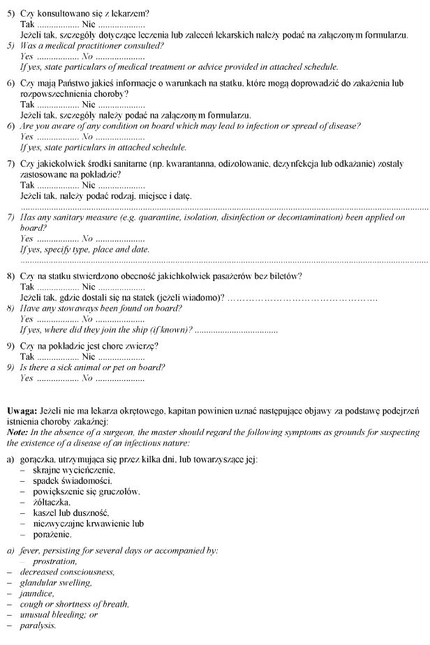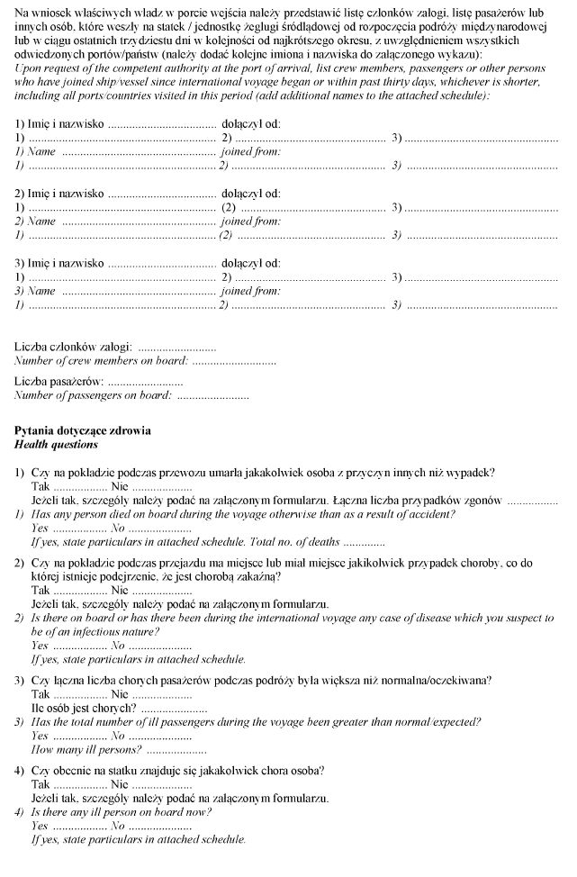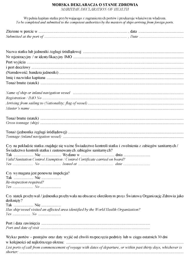 h) morska deklaracja o stanie zdrowia - wzór formularza jest określony w załączniku nr 9 do rozporządzenia.