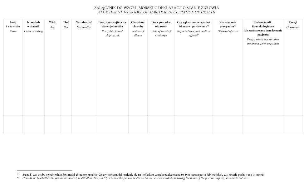 WZÓR - MORSKA DEKLARACJA O STANIE ZDROWIA