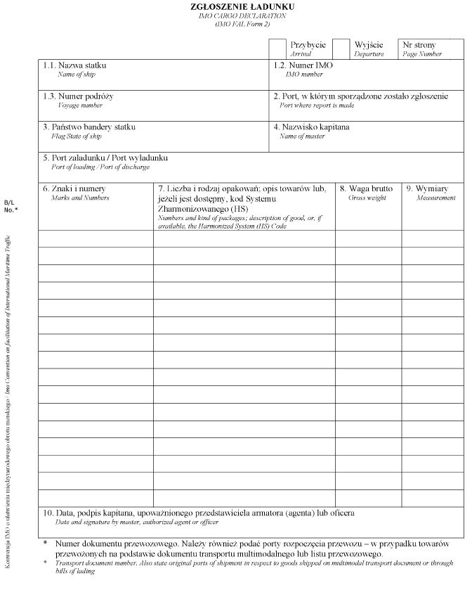 b) zgłoszenie ładunku - wzór formularza jest określony w załączniku nr 3 do rozporządzenia,