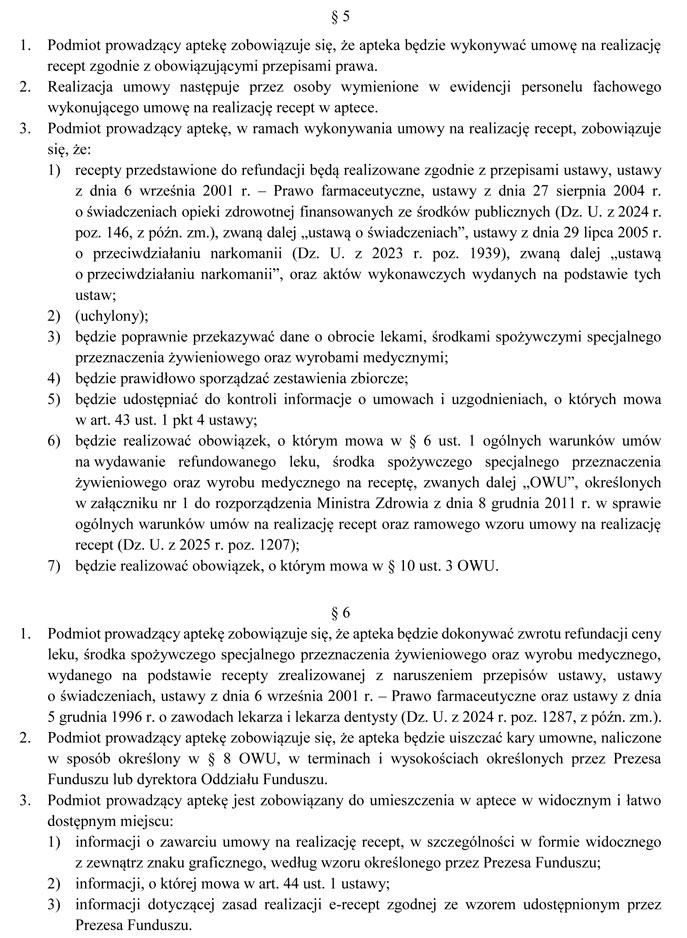 Warunki wykonywania umowy na realizację recept oraz zasady rozliczania refundacji