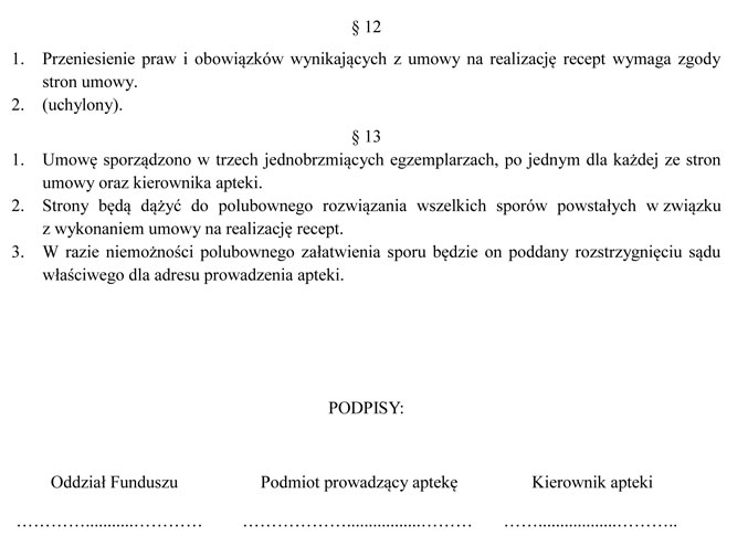 § 10. 1. Umowa na realizację recept wygasa z dniem ostatecznego uchylenia, stwierdzenia nieważności, stwierdzenia wygaśnięcia lub cofnięcia zezwolenia na prowadzenie apteki.