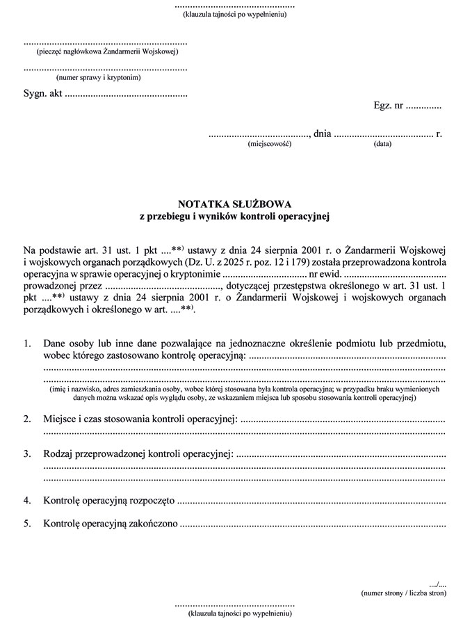 WZÓR - NOTATKA SŁUŻBOWA Z PRZEBIEGU I WYNIKÓW KONTROLI OPERACYJNEJ