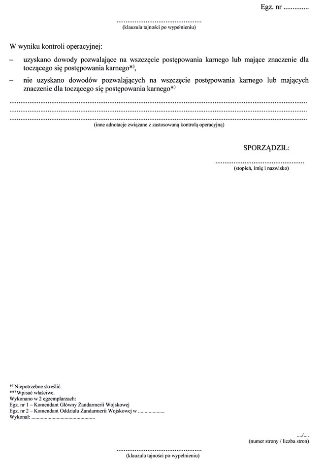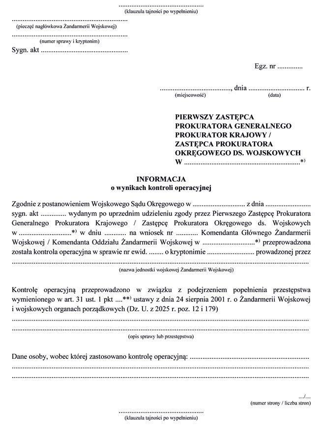 WZÓR - INFORMACJA O WYNIKACH KONTROLI OPERACYJNEJ